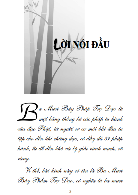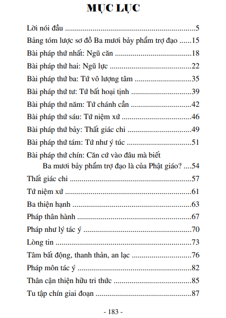 Ba Mươi Bảy Pháp Trợ Đạo là một bảng thống kê các pháp tu hành của đạo Phật, từ người sơ cơ mới bắt đầu tu tập cho đến khi chứng đạo, có đầy đủ 37 pháp hành, từ dễ đến khó và lý giải rành mạch, rõ ràng.