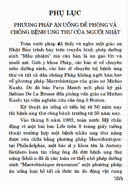 Phần cuối quyển sách là phần phụ lục với bài viết hướng dẫn ăn uống và biện pháp chống căn bệnh ung thư theo kinh nghiệm của người Nhật.