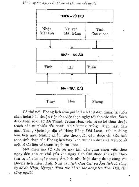 Chọn việc theo lịch âm như thế nào? Cơ sở từ đâu? Người Trung Hoa, Việt Nam xưa lấy thuyết Thiên Địa Nhân làm nòng cốt để cân bằng cuộc sống của mỗi người sao cho bình ổn theo hướng phát triển. Trái Đất từ nó quay một vòng và qua 12 thời khắc mà đón nhận sự tác động của các vì tinh tú, của nhât, nguyệt theo chiều hướng tốt hoặc xấu tới mỗi người. Để biết sự tác động này qua đó mà biết “đạo trời” và “thông thiên văn, tường địa lý”.