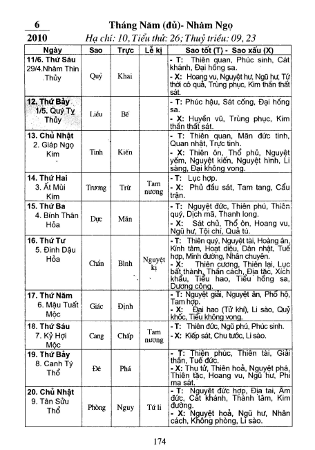 Chọn việc theo cát tinh hung tinh từng ngày