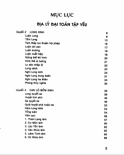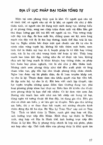 Địa Lý Toàn Thư trọn bộ sẽ lý giải thuật phong thủy dưới ánh sáng của chủ nghĩa duy vật lịch sử, với tinh thần gạn đục, khơi trong nhằm chấn hưng văn hóa dân tộc. Trong từng đoạn đều có sự chú thích, bình giải theo tinh thần khoa học. Sách được chia làm 3 phần: