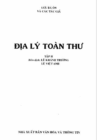 Địa Lý Toàn Thư Tập 2 (NXB Văn Hóa Thông Tin 1996) – Lưu Bá Ôn, 376 Trang