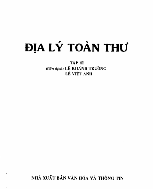 Địa Lý Toàn Thư Tập 3 (NXB Văn Hóa Thông Tin 1996) – Lưu Bá Ôn, 377 Trang