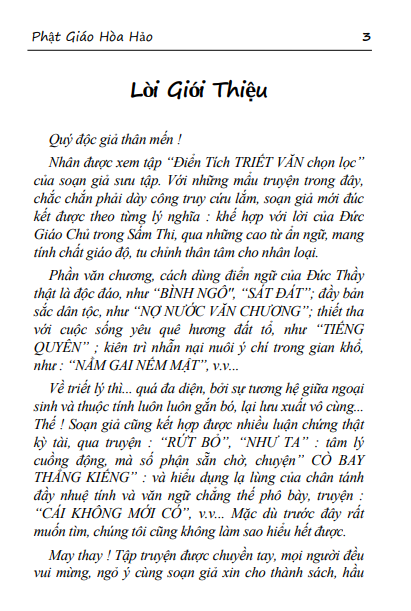 Do đó, khi đọc đến tập “Điển Tích TRIẾT VĂN chọn lọc” là niềm vui thật lớn với chúng tôi, và hơn thế nữa, hôm nay tập sách được hình thành. Vậy, xin trân trọng gởi đến các bạn niềm vui bất tận ấy ! ! !