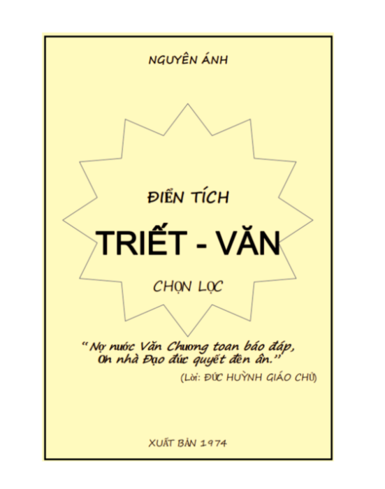Nhân được xem tập “Điển Tích TRIẾT VĂN chọn lọc” của soạn giả sưu tập. Với những mẩu truyện trong đây, chắc chắn phải dày công truy cứu lắm, soạn giả mới đúc kết được theo từng lý nghĩa : khế hợp với lời của Đức Giáo Chủ trong Sấm Thi, qua những cao từ ẩn ngữ, mang tính chất giáo độ, tu chỉnh thân tâm cho nhân loại.