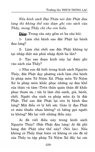 Còn bảo rằng sách này dạy không đúng lời của Phật, thì quý vị hãy lấy tạng kinh Nikaya ra so sánh và phải sống cho đúng đời sống Phạm hạnh của bậc Thánh Tăng, Thánh Ni, thiền định phải nhập cho được bốn Thánh Định, làm chủ đời sống, tâm không còn tham sân si, mạn, nghi; làm chủ bệnh tật, không còn đi bệnh viện bác sĩ mà phải tự khắc phục các bệnh khổ, nó không còn tác động đến thân tâm và phải làm chủ sự sống chết. Khi làm chủ được như vậy thì quý vị mới bình luận bộ sách này đúng sai với giáo lý Phật Giáo. Còn quý vị chưa thực hiện được thì xin quý vị đừng bàn đến mà hãy lo tu tập để cứu mình. Vì quý vị chưa làm chủ được sự (9) sống chết mà dựa vào những kiến giải của những nhà học giả xưa và nay thì cũng giống như những người mù sờ voi thì quý vị sẽ làm trò cười cho những người hiểu biết. Tại sao vậy?