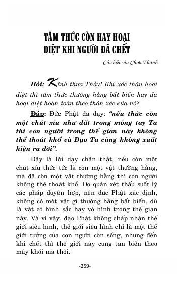 Trong sách này dạy rằng “không có thế giới siêu hình”, nếu quý vị bảo rằng: “có thế giới siêu hình thì quý vị hãy tu tập có trí tuệ tam minh, rồi quan sát vũ trụ tìm xem linh hồn người chết, Thần, Thánh, quỷ ma ở đâu, có hay không có? (8) Chừng đó mới bình luận sách này đúng sai.