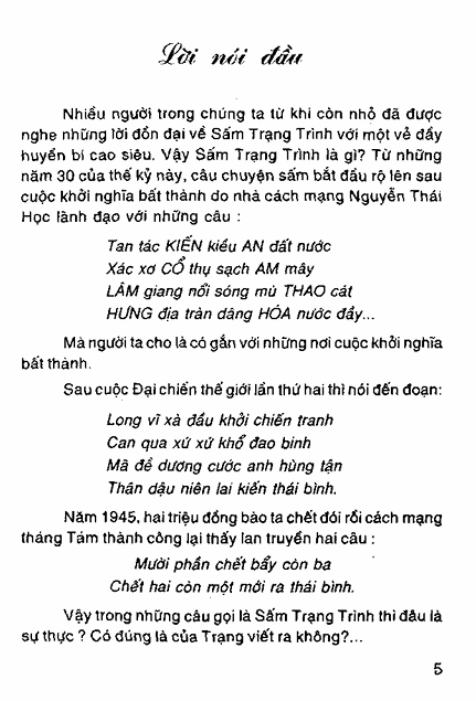 Nhiều người trong chúng ta từ khi còn nhỏ đã được nghe những lời đồn đại về Sấm Trạng Trình với một vẻ đầy huyền bí cao siêu. Vậy Sấm Trạng Trình là gì? Từ những năm 30 của thế kỷ này, câu chuyện sấm bắt đầu rộ lên sau cuộc khởi nghĩa bất thành do nhà cách mạng Nguyễn Thái Học lãnh đạo với những câu: