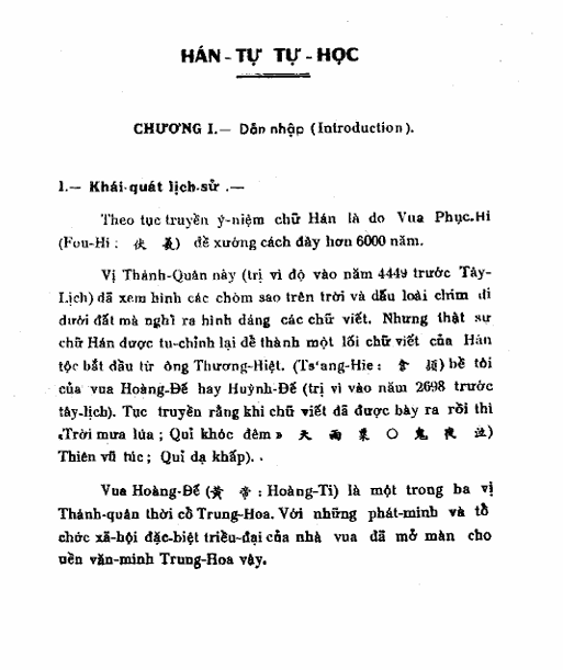 Trong quyển I “hán tự tự học” trình bày những đại cương về Hán tự như cách viết, cách tra chữ theo bộ hoặc theo số nét của mỗi chữ và đã giúp độc giả làm quen với 21 bộ thông qua các thí dụ.