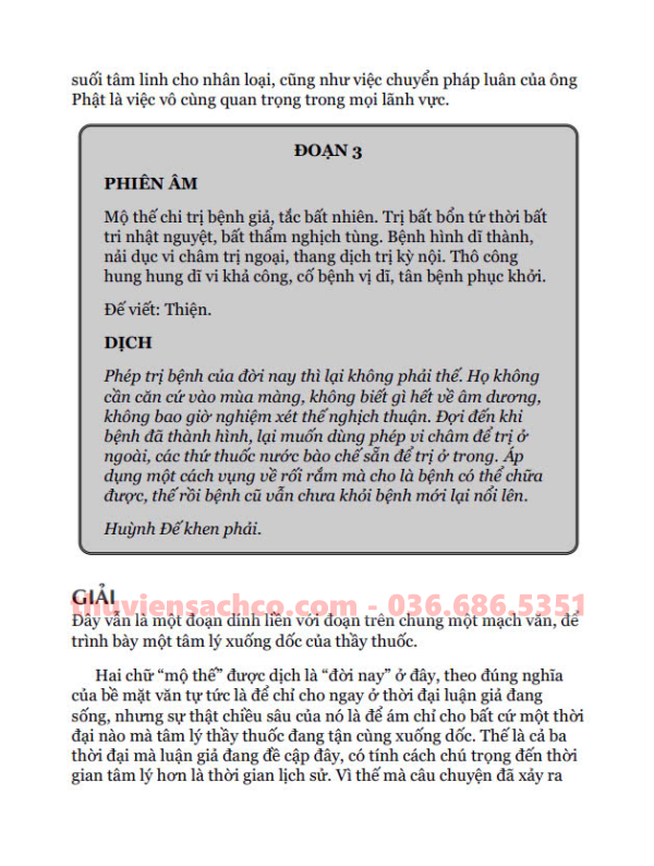 Khi nghe nói thầy trò chúng tôi mở công trình dịch thuật, bình giảng qui mô và làm giáo án cho lớp Văn Hiến Y Đạo khỏi từ năm 1971 tại chùa Hội Tông quận 6, cũng có người cười nhạo chúng tôi. Mặc kệ những kẻ nhắm mắt bịt tai, chúng tôi vẫn dần phát triển qua các lớp kế thừa, cho đến ngày nay hãy còn tiếp diễn…