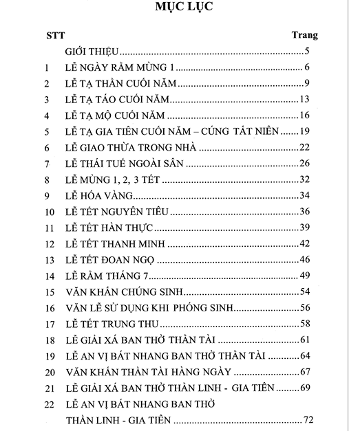 Sách có tổng 36 bài văn khấn cùng nghi thức sắm lễ cho từng ngày quan trọng trong năm: