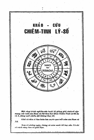 Sách số Khảo Cứu Chiêm Tinh Lý Số dùng suốt nhiều đời người không thay đổi. Đông Tây gặp nhau về lý số. Luận đại khái về tính tình, nghề nghiệp, nợ duyên. Coi Nam Nữ sống từ 1 tuổi đến 100 tuổi, cung Mạng gì ? Coi Năm sanh và biến theo Tam Thế Diễn Cầm. Coi cho biết tại sao ? Nam âm và nữ dương. Coi số mạng thuộc ngũ hành theo mùa sanh tốt hay xấu. Coi 8 cung sanh của nam nữ được phú quý thọ bần tiện ngộ họa phước. Coi số vợ chồng ăn ở với nhau tốt hay xấu. Coi tuổi chồng vợ nên thờ Ông Bà chi độ mạng. Coi nam có mấy đời vợ, nữ có mấy đời chồng. Coi sao hạn tốt xấu của nam nữ, có chỉ cách cúng giải sao hạn.
