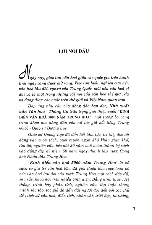 Cuốn Kinh Điển Văn Hoá 5000 Năm Trung Hoa là bộ sách có giá trị văn hoá lớn – một trong ba, cuốn sách đã giới thiệu tóm lược đầy đủ, toàn bộ nền văn hoá lâu đời của Trung Hoa một cách sâu sắc, khoa học trên nhiều bình diện. Sách sẽ dẫn dắt bạn đến với các chủ đề: lịch sử, điển tịch, nhân vật, triết học, tư tưởng, tôn giáo, nghệ thuật, văn tự, … một cách khoa học, cụ thể, đầy hào hứng và hấp dẫn.