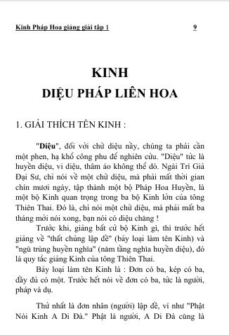 “Kinh Diệu Pháp Liên Hoa Giảng Giải” có hai mươi tám phẩm, thứ nhất là phẩm tựa, tường thuật nhân duyên của Kinh văn. Bổn lai tất cả các kinh văn, phẩm đầu tiên không gọi là phẩm tựa, nhưng chỉ có bộ Kinh Pháp Hoa này, dùng phẩm thứ nhất làm phẩm tựa, phẩm phương tiện thứ hai dùng quyền xảo phương tiện để giáo hóa chúng sinh.