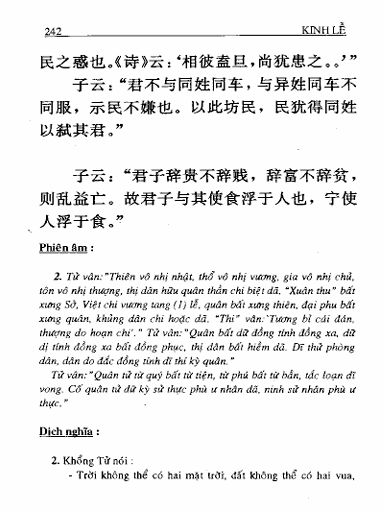 Toàn bộ Kinh Lễ được viết bằng tản văn, không chỉ miêu tả chế độ lễ nghi đương thời mà còn giáo dục về nhân nghĩa, đạo đức, ngoài ra có giá trị về văn học rất lớn. Đại Học và Trung Dung, hai cuốn sách kinh điển của Nho giáo, chính là hai thiên trong Kinh Lễ. Khổng Tử hiệu đính lại Kinh Lễ mong dùng làm phương tiện để duy trì và ổn định trật tự. Khổng Tử nói: “Không học Kinh Lễ thì không biết đi đứng ở đời” (sách Luận Ngữ).