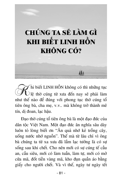 Linh hồn là một vấn đề cần phải được xác định làm sáng tỏ để mọi người không còn tin một cách mù quáng, lạc hậu như từ xưa cho đến ngày nay.