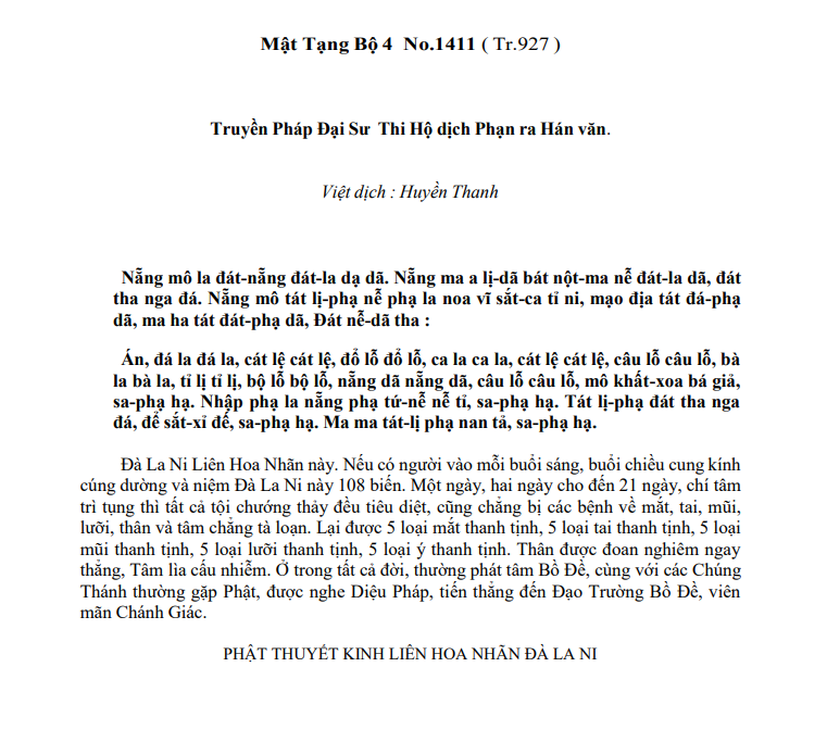 – Phật thuyết Kinh Liên Hoa Nhãn Đà la ni.