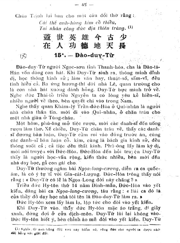 Tập truyện được in và xuất bản bằng chữ Quốc ngữ lần đầu tiên vào năm 1909. Tập sách được tái bản vào năm 1912 bởi nhà xuất bản Sống Mới. Trong bản này, Phan Kế Bính đã thêm phần Tựa, và ghi thời điểm vào năm Duy Tân thứ 6 (1912). Trong bản 1912, cũng đã ghi nhận có sự tham gia hiệu chỉnh của nhà báo Lê Văn Phúc, hiệu Kim Giang. Năm 1916, sách được một lần nữa được tái bản. Trong lần tái bản này, Lê Văn Phúc có ghi trong phần Lời người hiệu chính: “Sách này có dự vào chương-trình học thi tú-tài, lần này là lần in thứ tư, có hiệu chính lại, và có kê cứu chép thêm vào để ghi cho đủ các bậc anh-hùng hào-kiệt nước Nam ta.” Các truyện được thêm vào là truyện Bắc Bình Vương, Gia Long Đế, Tô Hiến Thành, Đào Duy Từ và Trịnh Hoài Đức.