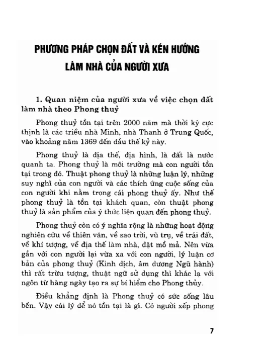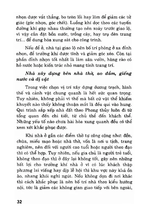 Ngày xưa khi xây nhà, chủ yếu là để trú ngụ, che nắng che mưa và phòng tránh thú dữ nên thường chọn những nơi có địa hình núi non che chở, bao bọc hay ở vị trí gần sông hồ. Trong xã hội hiện đại, do điều kiện eo hẹp về đất đai nên người nay khó có thể lựa chọn những khu đất đẹp và hướng nhà phù hợp với vận mệnh của mình.