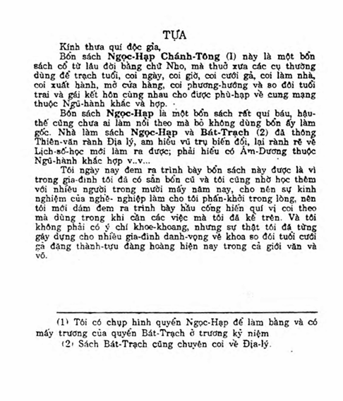 Cuốn sách một bổn sách cổ từ lâu đời bằng chữ Nho, mà thuở xưa các cụ thường dùng để trạch tuổi, coi ngày, coi giờ, coi cưới gả, coi làm nhà, coi xuất hành, mở cửa hàng, coi phương hướng và so đôi tuổi trai và gái kết hôn cùng nhau cho được phù hạp về cung mạng thuộc Ngũ hành khắc và hạp.