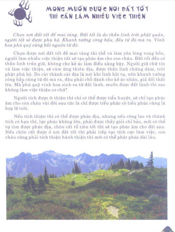 Việc tìm vị trí đất, hướng đặt mộ… là phong tục rất được coi trọng, nhưng điều quan trọng nhất là “Tiên tích Đức, hậu tầm Long” và “Đức năng thắng số”.