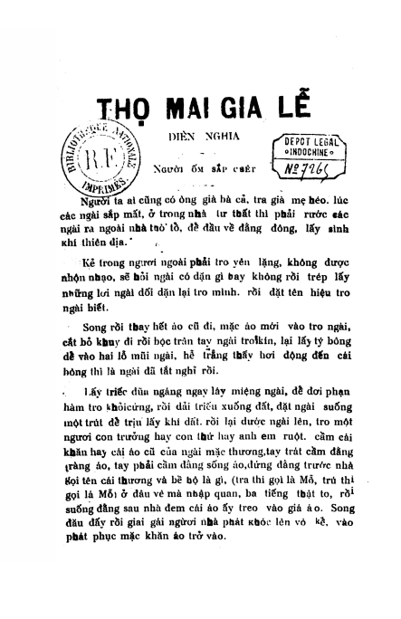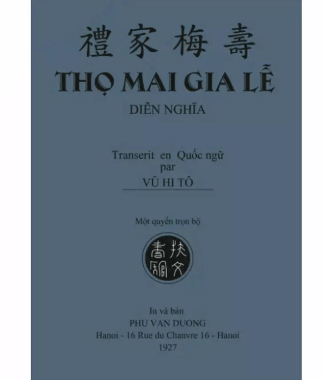 Sách: THỌ MAI GIA LỄ DIỄN NGHĨA – PHÚ VĂN DƯƠNG – 1927
