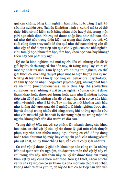 “Có hay không có nghiệp? Có hay không có tự ngã? Có hay không có thời gian? Có hay không có một linh hồn? Thật là những câu hỏi choáng váng! Ký ức được lưu trữ ở đâu để tạo thành nghiệp? Khoa học não bộ trả lời: ở hippocampus (hồi hải mã) trong não, cùng với thể viền, lưu giữ ký ức, chịu trách nhiệm cả cảm xúc lẫn hành vi, nhờ nhu nhuyến của các synapse (điểm tiếp hợp thần kinh).” – Đỗ Hồng Ngọc (Việt Nam).