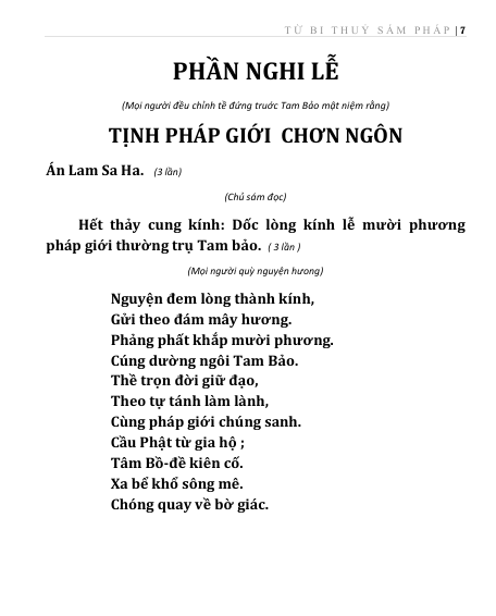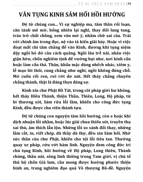 Khi tụng kinh này, chúng ta phải thành tâm hối lỗi, quyết tâm từ bỏ tất cả những điều đã phạm phải và cố gắng làm điều thiện, tránh xa điều ác. Điều này giúp tiêu diệt tội khiên của chúng ta và có khả năng rửa tội cho người khác thông qua tâm thanh tịnh và trong suốt. Hối lỗi và làm điều thiện giúp chúng ta tránh xa ác nghiệp.