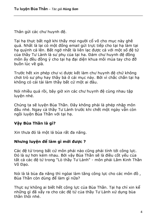 Tu luyện bùa thần là cuốn sách huyền thuật khá hay của tác giả Hạ Sư Hùng Sơn – Lâm Kinh Thần Võ Đạo, cuốn sách giúp các bạn thực hành về bùa ngải.
